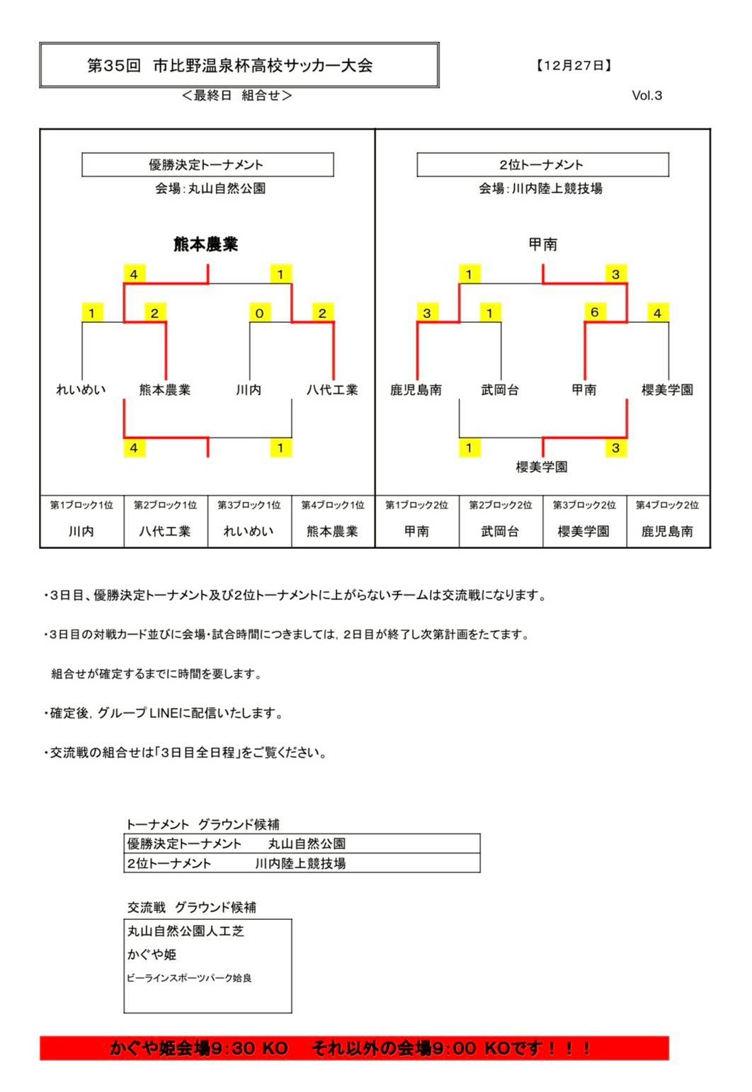 3日目の対戦カード並びに会場につきましては大会責任者一任とさせて頂きます。